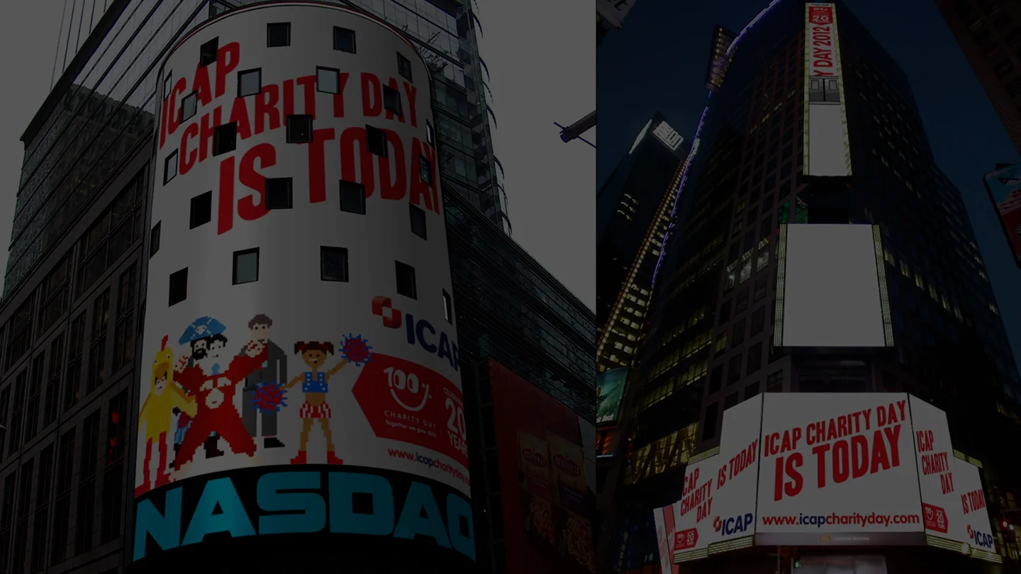 Art direction, concept and illustration for ICAP charity day Times Square Thompsons Reuter sign takeover.